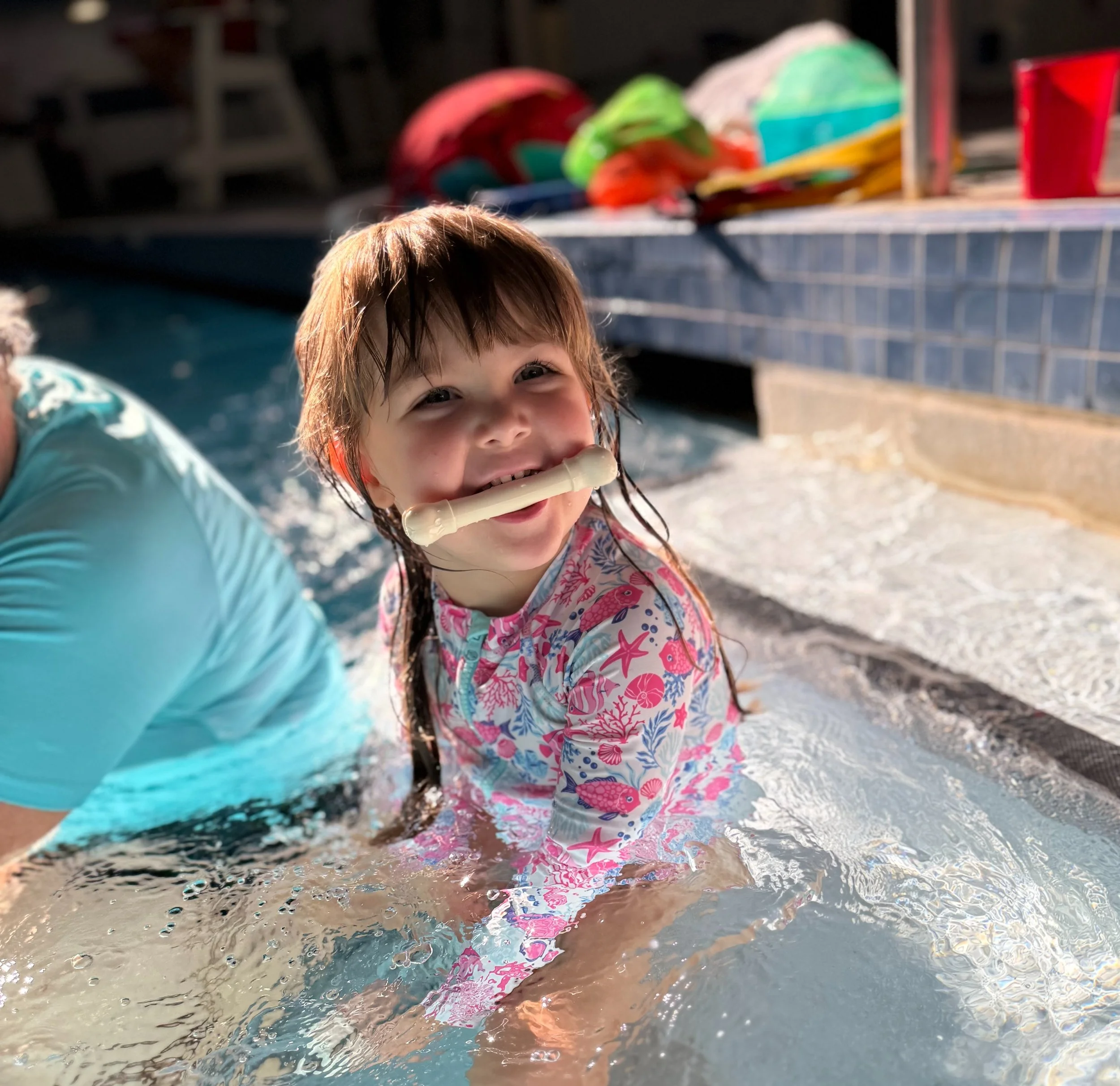 We’re excited to introduce our Aquatic Physical Therapy program—an innovative, fun, and effective way to support children’s motor development and physical goals. Held in a warm, child-friendly pool, sessions are playfully tailored to each child’s needs. Aquatic therapy can help improve strength, coordination, balance, and endurance in a low-impact environment that reduces stress on joints and encourages movement. Whether your child is working on walking, balance, or building confidence in their body, our aquatic program offers a motivating and supportive space to make progress through play.